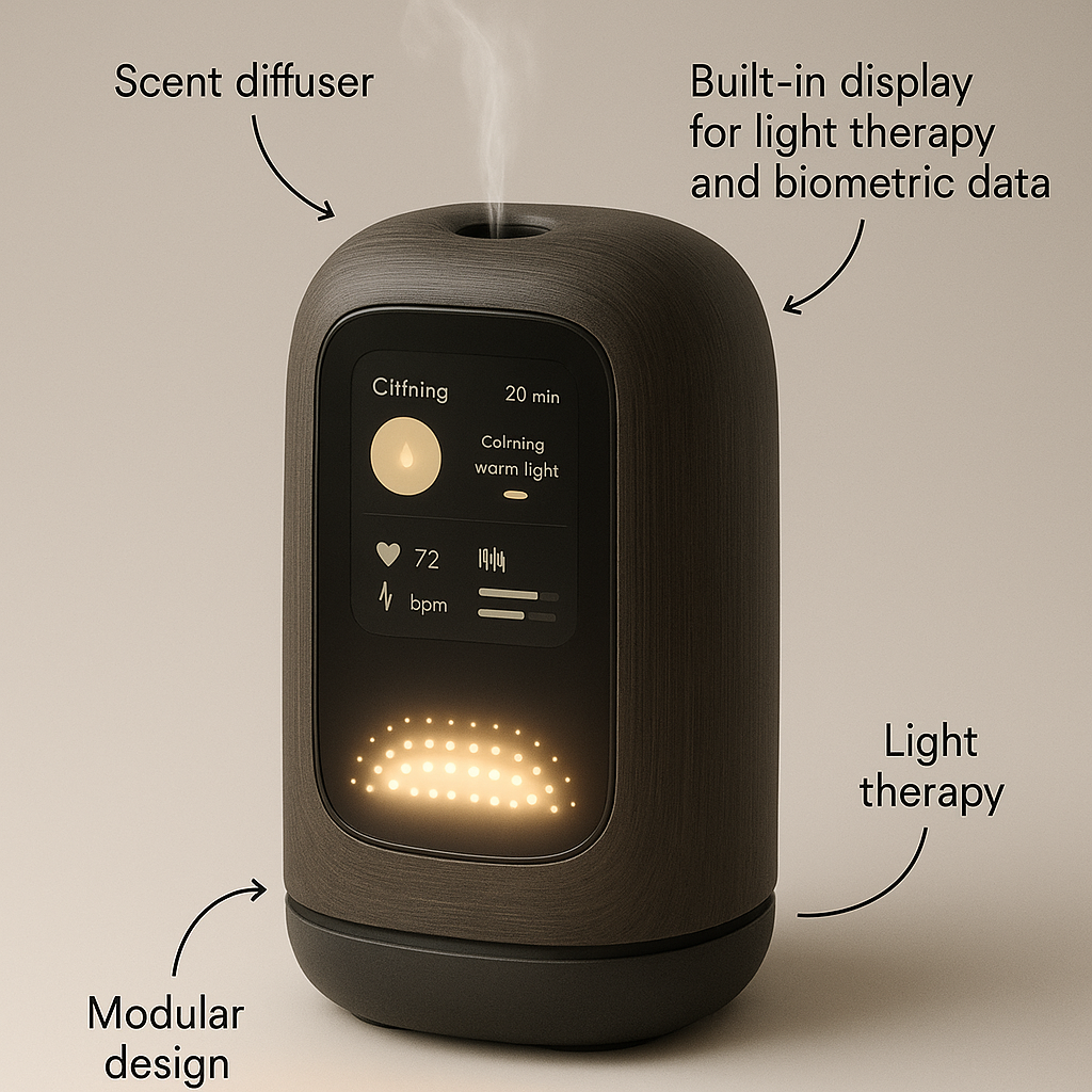 This modular system offers temperature control, aroma dispensing, and mood lighting, helping service providers build calm, regulated spaces within offices or shared environments.